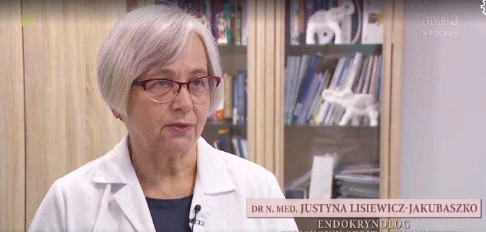 W programie emitowanym w TVP3 Wrocław „Szlachetne Zdrowie” dr n. med. Justyna Lisiewicz-Jakubaszko, kierownik Kliniki Chorób Wewnętrznych omówiła podstawowe objawy chorej tarczycy, które powinny zaniepokoić pacjenta, ale gorąco zachęcała także wszystkich do okresowej profilaktyki oraz samobadania. – Tak, jak kobiety badają piersi, tak wszyscy powinni co jakiś czas sprawdzić tarczycę. To nic nie kosztuje, a da informację, czy nie dzieje się coś niepokojącego – wyjaśnia.