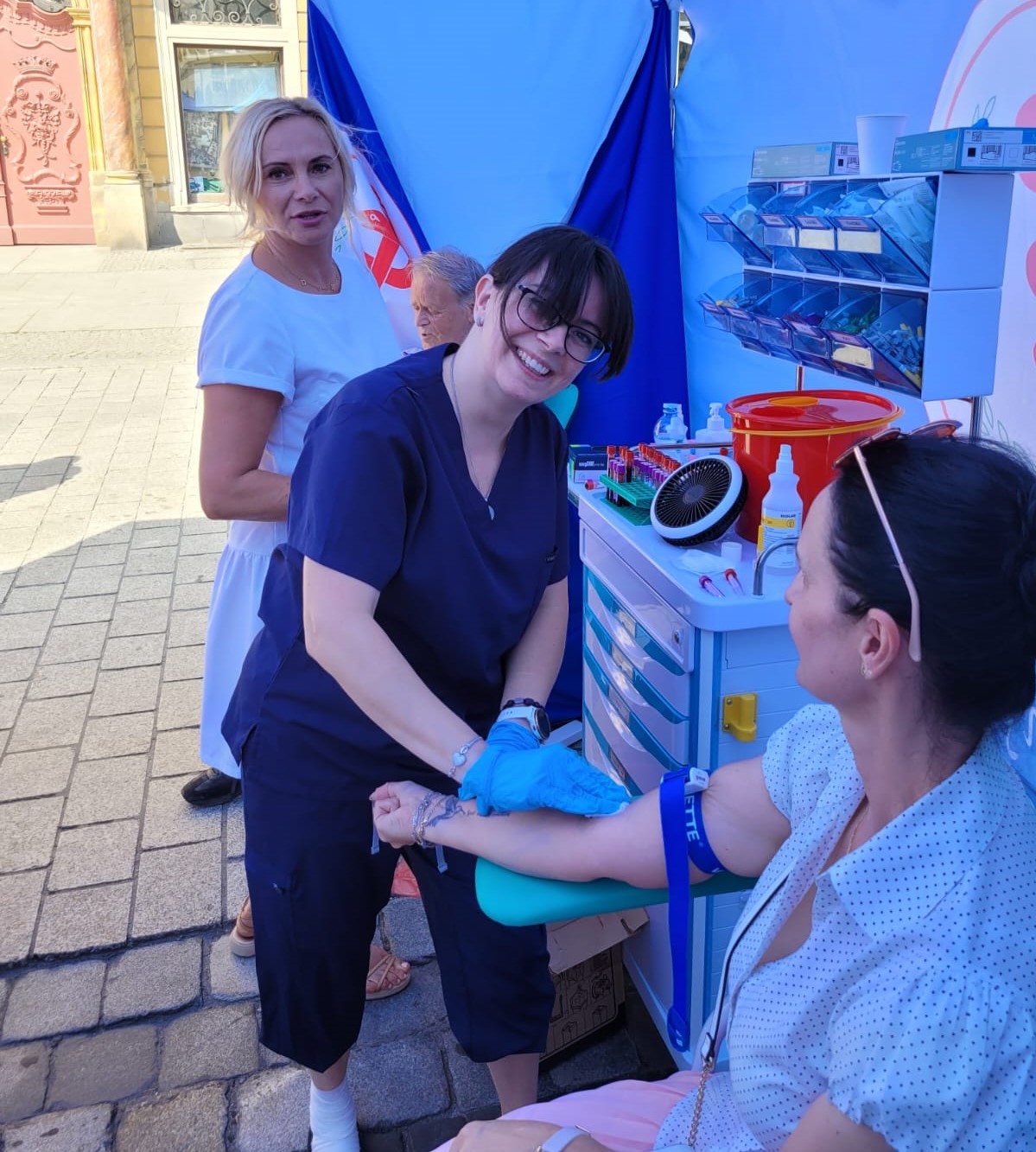 Choć słupki rtęci wskazywały ponad 30 stopni Celsjusza, a na wrocławskim bruku temperatura z pewnością była dużo wyższa, zespół Zakładu Diagnostyki Laboratoryjnej przez kilka godzin, w największym skwarze, pobierał krew do badań laboratoryjnych. Chętni, których jak zwykle nie zabrakło, mogli sprawdzić morfologię krwi, poziom lipidów oraz TSH, czyli hormon tarczycy. – Do naszych stanowisk, przygotowanych pod specjalnym namiotem 4. Wojskowego Szpitala Klinicznego, ustawiały się nawet kolejki, ale jesteśmy do tego przyzwyczajeni. Od lat, przy okazji obchodów święta Wojska Polskiego, oferujemy wrocławianom i wszystkim chętnym możliwość zadbania o swoje zdrowie i nigdy nie narzekaliśmy na frekwencję. Tym razem zbadaliśmy blisko 200 osób – mówi dr n. med. Jacek Majda, kierownik Zakładu Diagnostyki Laboratoryjnej.